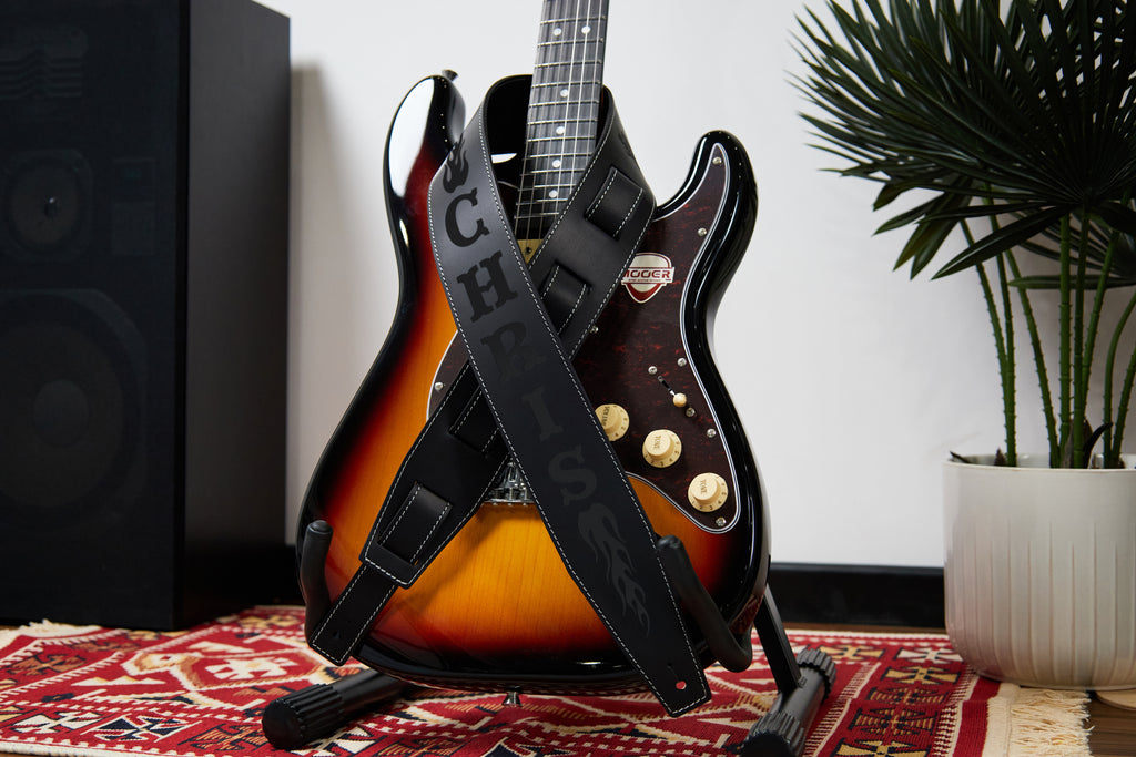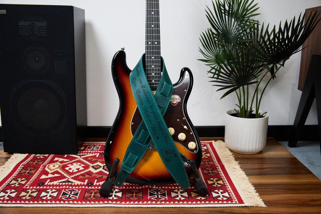 Guitar Strap + Gift Box: when you select the gift set option, personalization on both items is included at no extra cost. Describe all details for both in the personalization field.