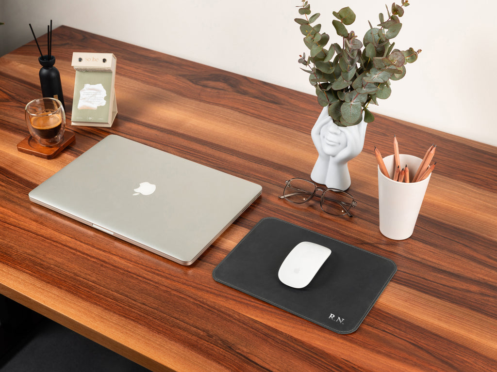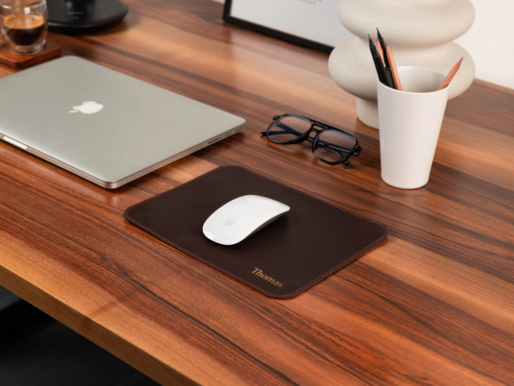Our genuine leather desk pad is a sophisticated and functional accessory designed to enhance your desk setup. Crafted from Crazy Horse leather, it combines timeless elegance with practicality — giving your workspace a refined, organized look while protecting the surface beneath.